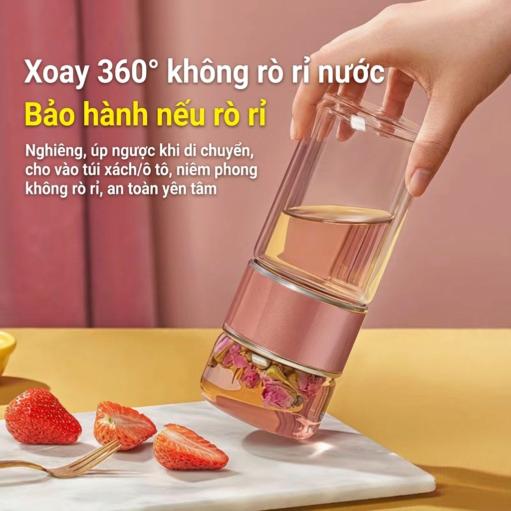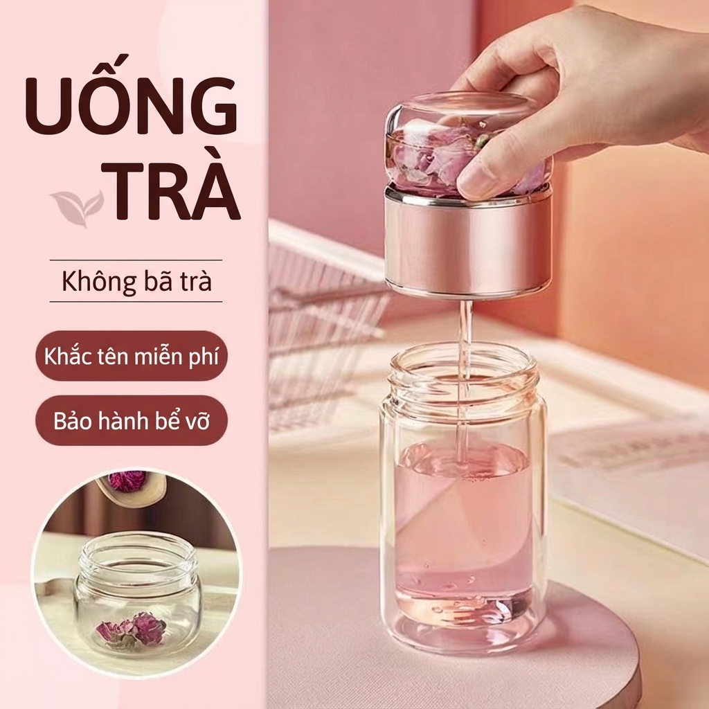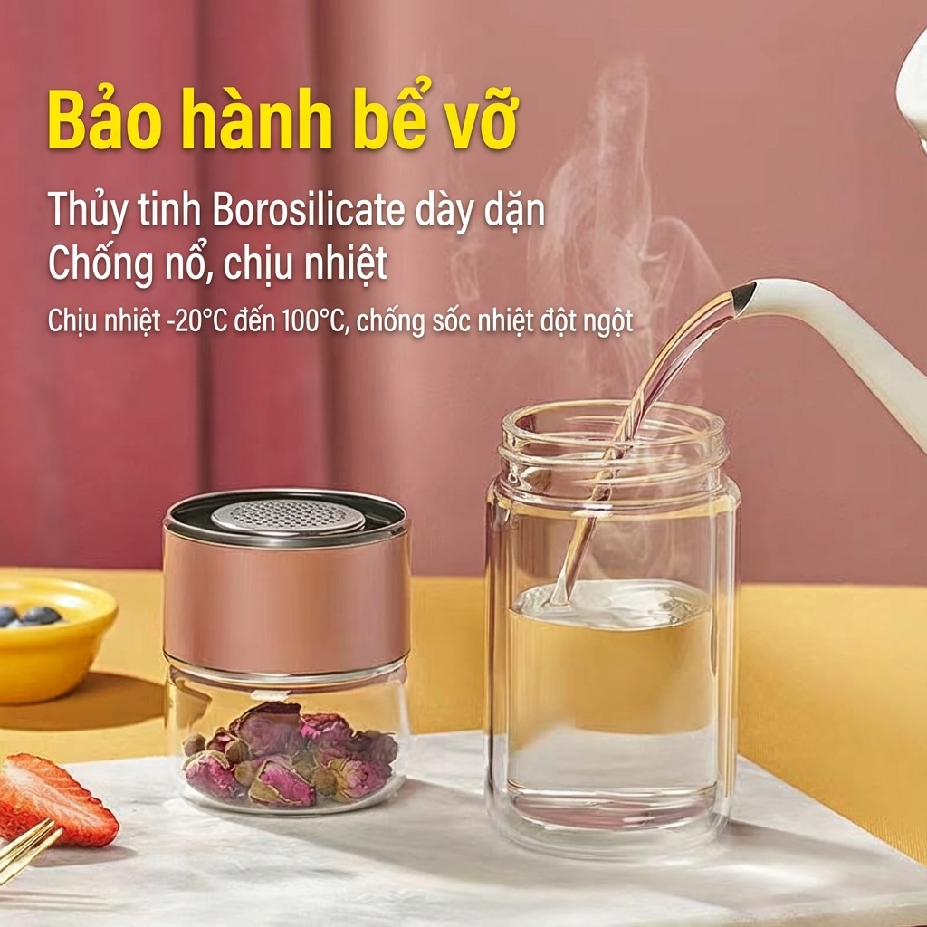 ✅ Thủy tinh 2 lớp Borosilicate: Chịu sốc nhiệt -20°C đến 150°C. Cầm tay không nóng, giữ nhiệt ổn định.
