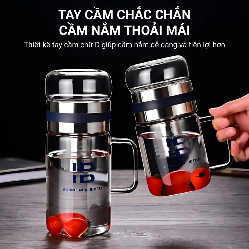 Không cần cầu kỳ hay mất thời gian chuẩn bị, chiếc bình mang đến một phong cách thưởng trà hoàn toàn mới nhẹ nhàng, gọn gàng nhưng vẫn đủ đầy hương vị. Sản phẩm được làm từ thủy tinh borosilicate cao cấp, có khả năng chịu nhiệt tốt, chống nứt vỡ và an toàn cho sức khỏe. Thiết kế đơn lớp mỏng nhẹ giúp giảm trọng lượng tối đa nhưng vẫn đảm bảo khả năng chống bỏng tay, mang đến cảm giác thoải mái khi cầm nắm.