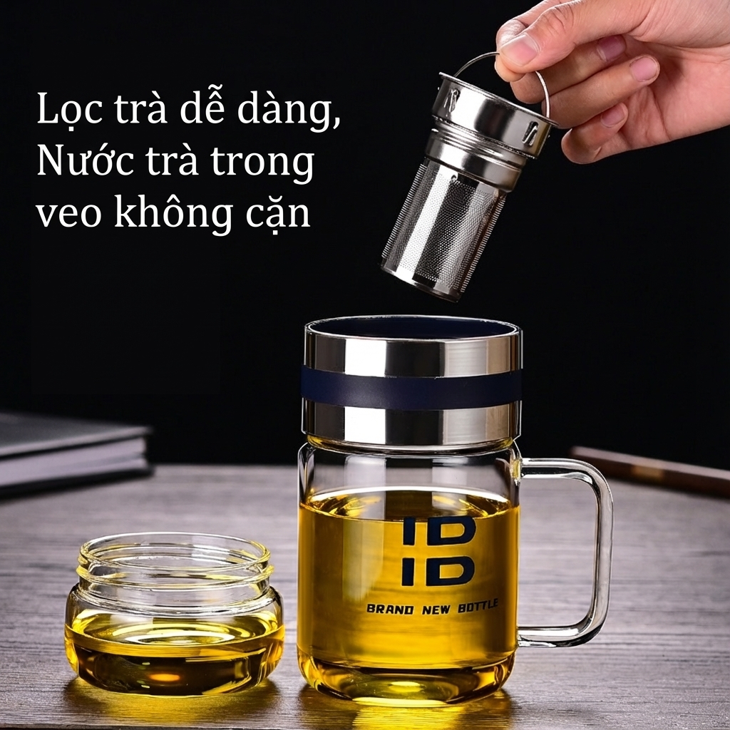 Nhờ thiết kế tách trà – nước thông minh, bạn có thể pha trà theo đúng khẩu vị chỉ trong vài phút, không lo cặn trà hay vị quá đậm. Kích thước nhỏ gọn dung tích 700ml, trọng lượng nhẹ, bình dễ dàng đồng hành cùng bạn trong balo, túi xách hay trên bàn làm việc. Dù là buổi sáng bận rộn hay chuyến đi xa, một bình trà thơm dịu luôn ở bên, giúp bạn thư giãn và tái tạo năng lượng.
